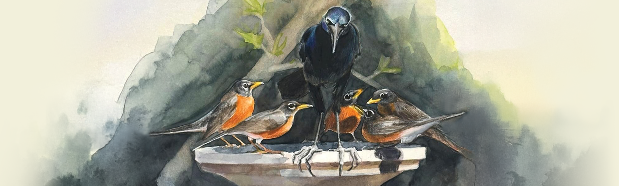 The story of an abandoned grackle, adopted and loved by a robin. He was teased because he was different and yet became their hero.